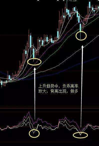 6,背离:在上升趋势中,BIAS若出现负乖离放大,可逢低做多。想下降趋势中,若BIAS指标出现正乖离放大,可逢高做空。